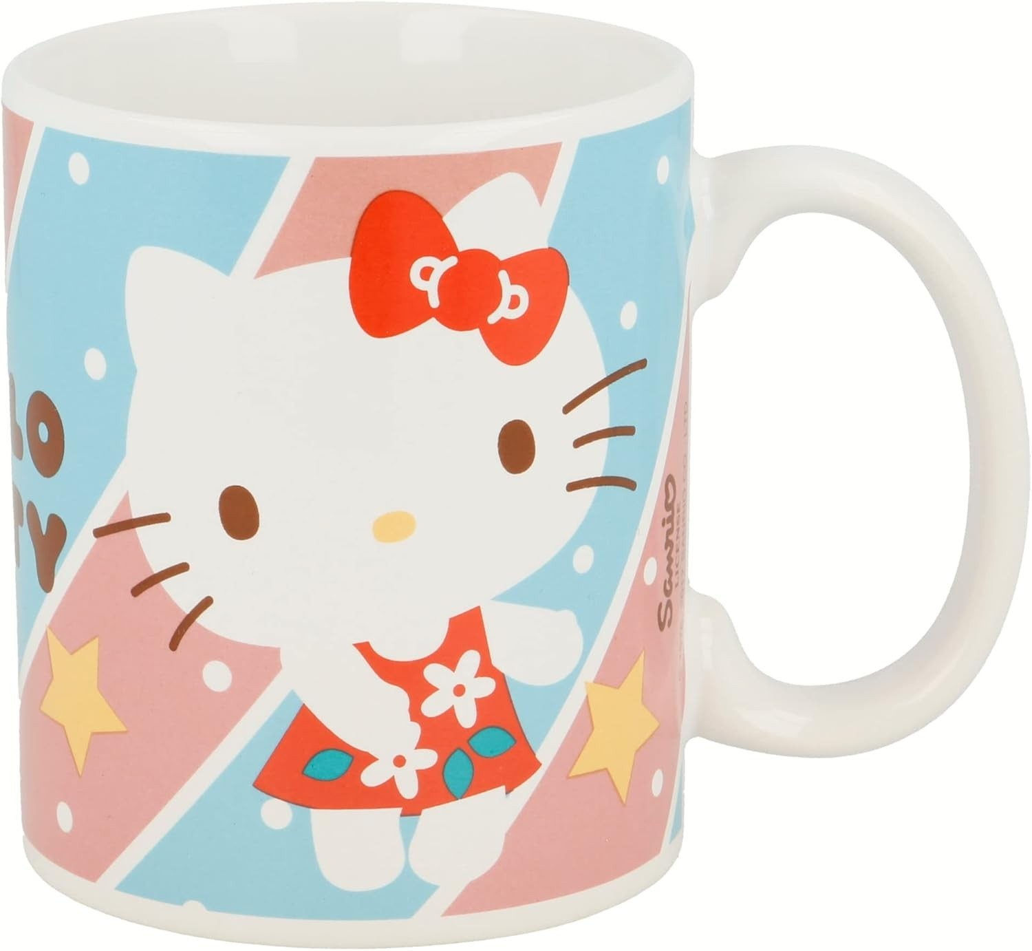 Mug en céramique aux designs du personnage bien-aimé Hello Kitty, parfait pour un usage quotidien ou comme cadeau. Ce produit sous licence officielle combine la fonctionnalité avec l'artwork iconique du personnage inspiré par les personnages populaires du cinéma et de la télévision.