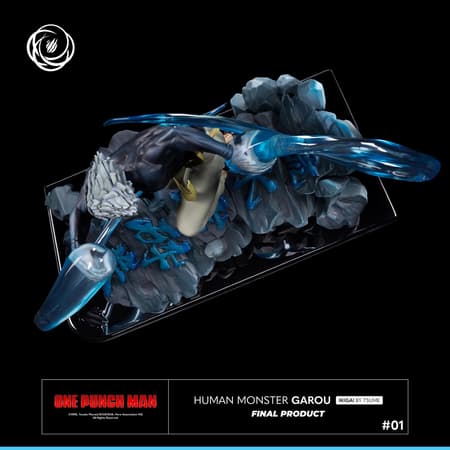 Garou est représenté lors de son combat contre Master Marcel. Il attaque le héros de classe S en utilisant la technique du poing destructeur fluctuant, tout comme son ancien Maître, Bang. Le nom de l'attaque représenté sur le socle rappelle cet affrontement.