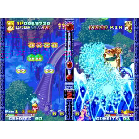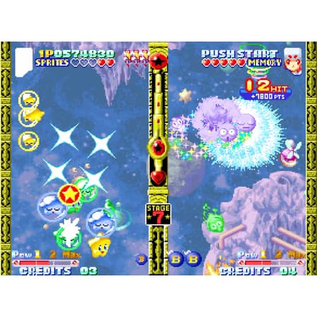 Découvrez l’un des titres les plus originaux et charmants de la bibliothèque NEOGEO avec Twinkle Star Sprites : un mélange unique entre jeu de tir vertical et gameplay compétitif en face à face. Alliant un design de personnages adorables à des mécanismes d'arcade intenses, ce jeu très apprécié des fans propose des combats au rythme effréné où attaquer votre adversaire est tout aussi important que d'éliminer les ennemis. Choisissez parmi une galerie colorée de personnages magiques et affrontez-vous dans des duels en écran partagé. Éliminez des vagues d'ennemis pour envoyer des schémas d'attaque, des boss et des dangers envahissant l'écran du côté de votre rival. Enchaînez les combos pour déclencher des contre-attaques dévastatrices et renverser le cours de la bataille en quelques secondes. Avec ses sprites éclatants, ses animations fluides, son scénario humoristique et son mode versus hautement addictif, Twinkle Star Sprites s'impose comme l'une des expériences les plus inventives et divertissantes sur NEOGEO AES+.