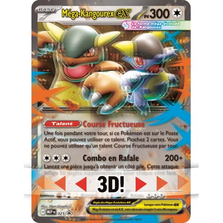 La Méga-Évolution transforme le petit de Kangourex en une véritable force de la nature. les deux Pokémon combinent leurs pouvoirs et deviennent Méga-Kangourex-ex. Piochez des cartes supplémentaires avec Course Fructueuse, puis utilisez Combo en Rafale et lancez des pièces pour essayer d'infliger plus de dégâts. Faites équipe avec Méga-Kangourex-ex en tant que carte promo brillante pour le jeu et en tant que carte lenticulaire grand format pour votre collection. Ouvrez ensuite les qautres boosters pour trouver d'autres superbes cartes !