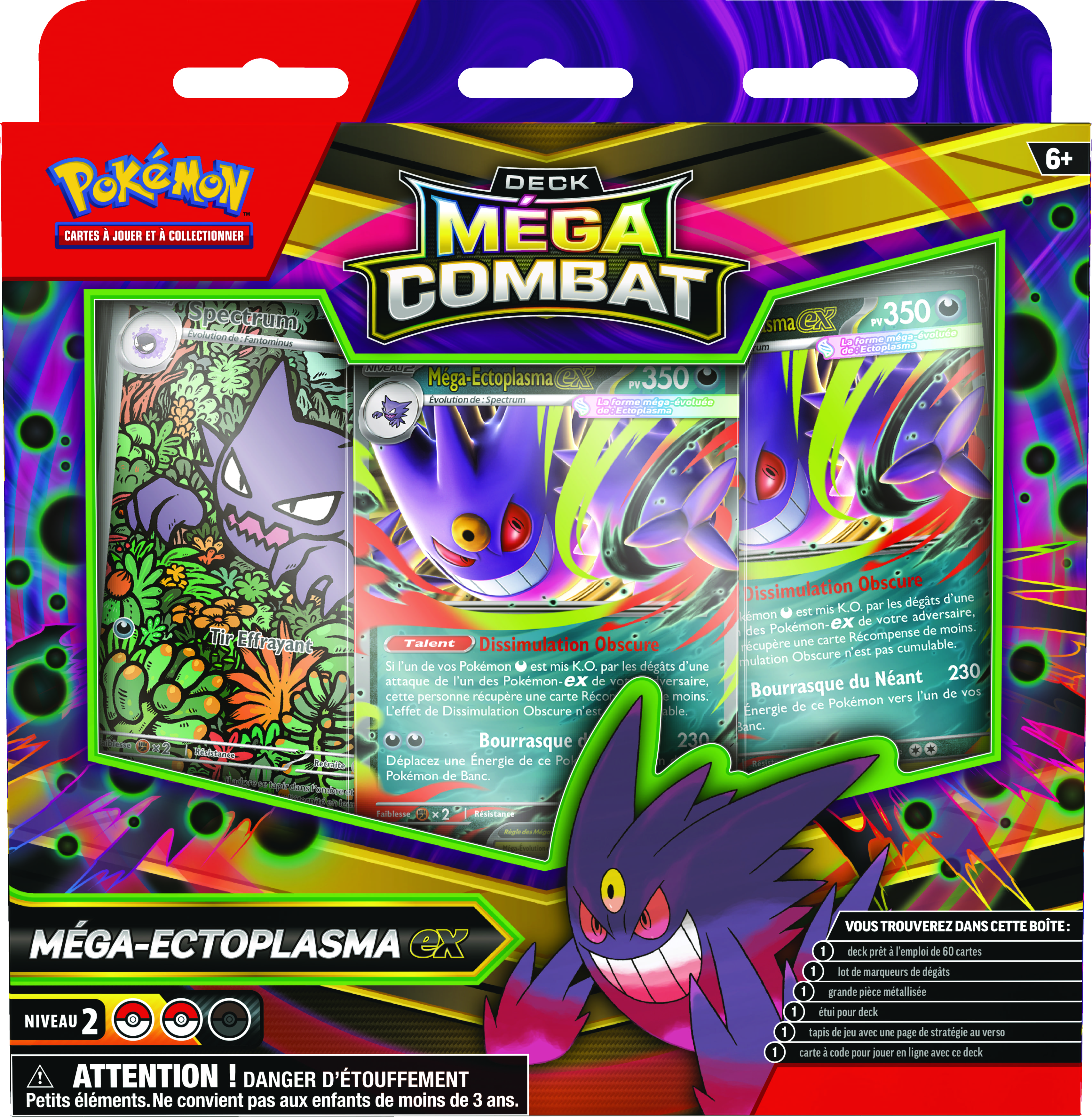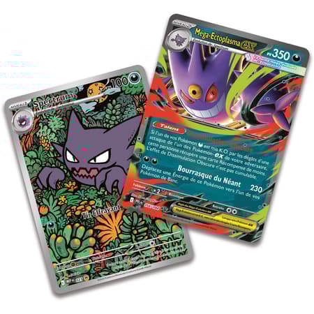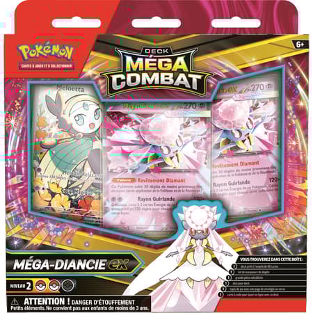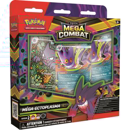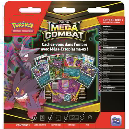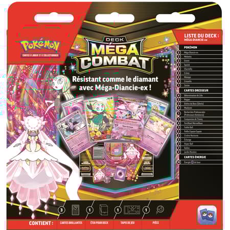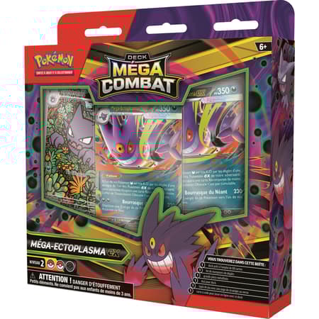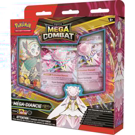 Allez-vous faire équipe avec Méga-Ectoplasma-ex, le maître des espiègleries qui émerge de l’ombre pour faire des ravages parmi vos adversaires ? Ou allez-vous éblouir vos ennemis à l’aide d’une stratégie stupéfiante avec Méga-Diancie-ex à vos côtés ? Quel que soit le puissant Pokémon-ex choisi, un méga-combat vous attend. Puisque ces decks contiennent tout ce dont vous avez besoin pour jouer, vous pouvez livrer des combats sans attendre.